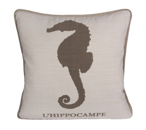 L642-HORS 18"x18"Sea Horse Pillow Eco Printed Flat Piped with a Linen Trim, Feather Insert part of the Lake House Collection, Zipper Closure for easy removal of Insert for Laundering