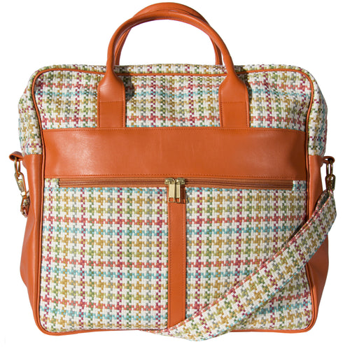 L1023-3038 Grande Cargo Rioja Stone trimmed w Authentic Leather. Spacious Weekender Tote Double Straps and Adjustable Shoulder Strap. Part of the Unbridled Passion, Travel and Cosmetic Bags Collection 16"x16"x8"