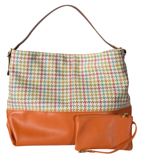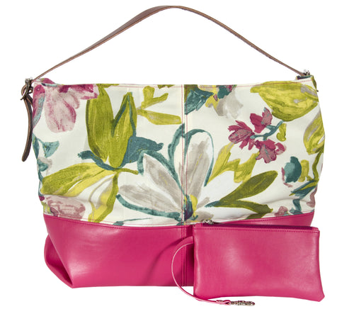 L1024-3125 Day Tote Chi Chi Coral Relaxed Every Day Tote with Structured Faux Leather Base and Adjustable Bridle Leather Shoulder Strap Part of the Cosmetic and Travel Collection 21"x14"x8"