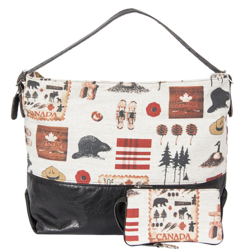 L1024-NRTH Day Tote Traveller Relaxed Every Day Tote with Structured Leather Base and Adjustable Bridle Leather Shoulder Strap Part of the Vintage Canadiana, Cosmetic and Travel Collections 21"x14"x8"