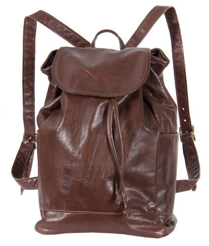 L1039-12 Backpack in an Authentic Old World Deep Chestnut Brown Leather. Part of The On the Tee Vintage Golf Collection and Cosmetic and Travel, Vintage Canadiana, and Totes Collections 10"x15"x5.5"