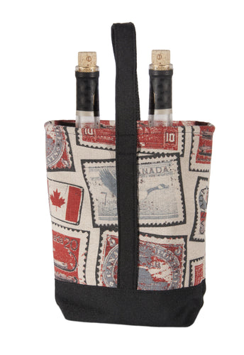 L1002-STMP 10"x10"x4" Vintage Stamp Images printed on this Double Wine Bottle Bag lined in a durable water proof Denier Nylon part of The Vintage Canadiana Collection